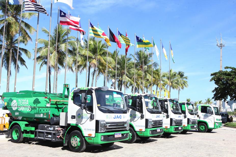 Com a entrega de um novo modelo pipa com capacidade de oito mil litros, a limpeza urbana de Santos já conta com cinco caminhões elétricos na frota. Os veículos já estão em operação, atendendo majoritariamente a Orla da Praia e substituindo modelos antigos movidos a diesel.